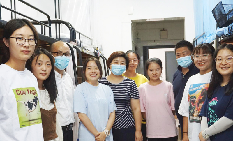 10月4日下午,公司党委书记朱小娟、经理陆国君,党委副书记、副经理陈俊怀带领全体辅导员深入新生宿舍,亲切看望2021级新同学。
