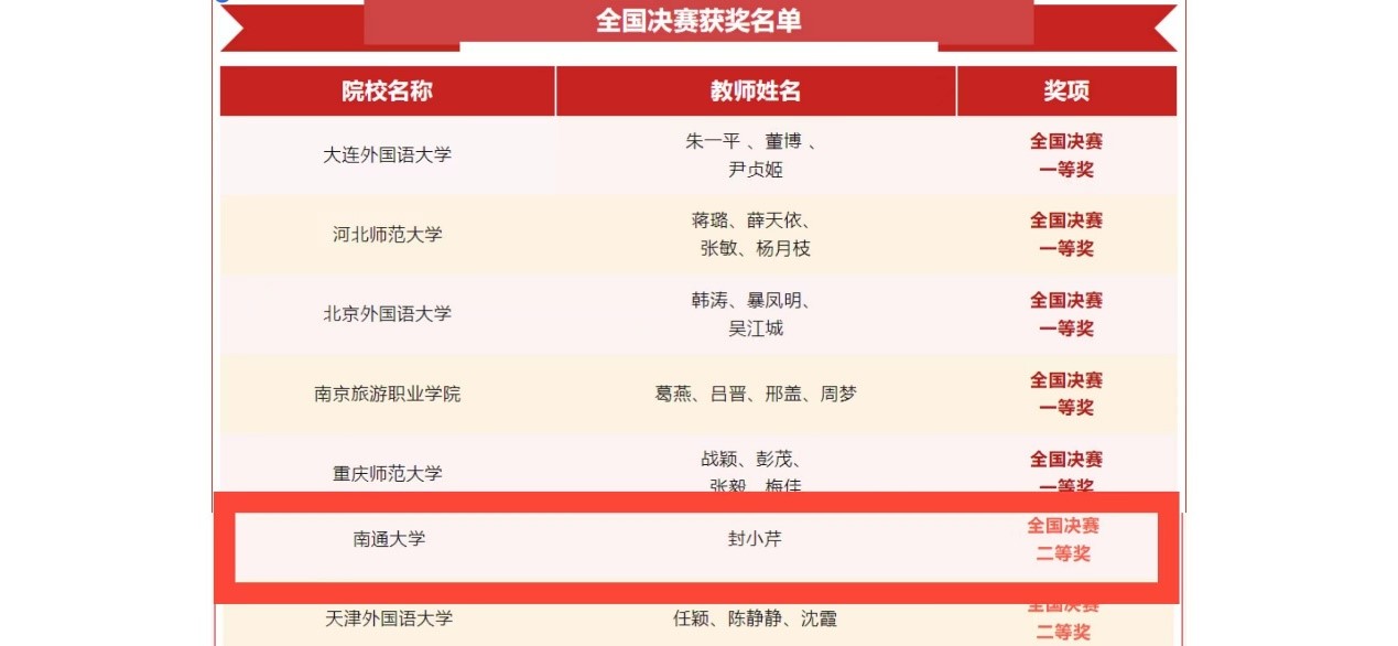 7月25日,2023“外研社杯” 全国高校日语课程思政教学设计大赛(日语专业组)评审结果公布,PA视讯集团官网教师封小芹的参赛作品获得全国决赛二等奖。