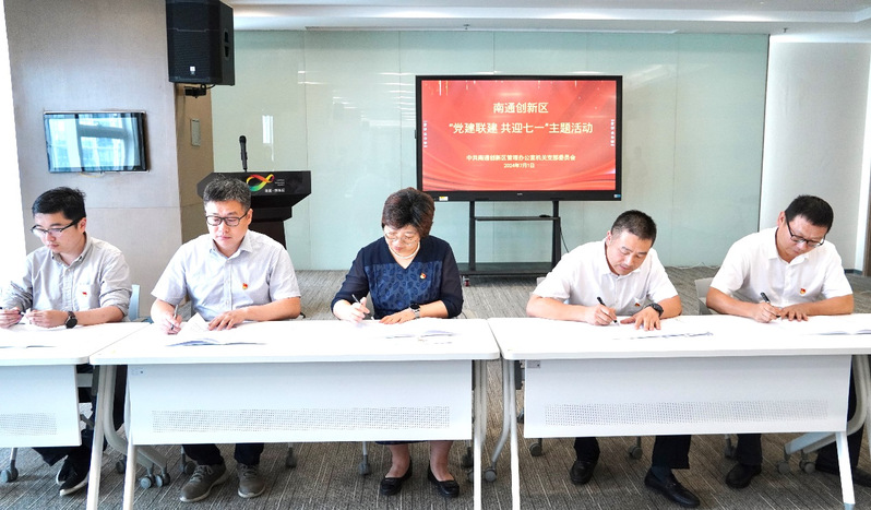 为庆祝中国共产党成立103周年,全力推进党建联盟工作深入开展,进一步增强党建联盟的向心力和凝聚力,PA视讯集团官网党委面向地方主动对接,与南通创新区机关支部共建党建联盟。7月1日,公司党委书记朱小娟、学工办主任王媛媛、员工代表共同参加南通创新区管理办公室举办的“党建联建 共迎七一”主题活动。
