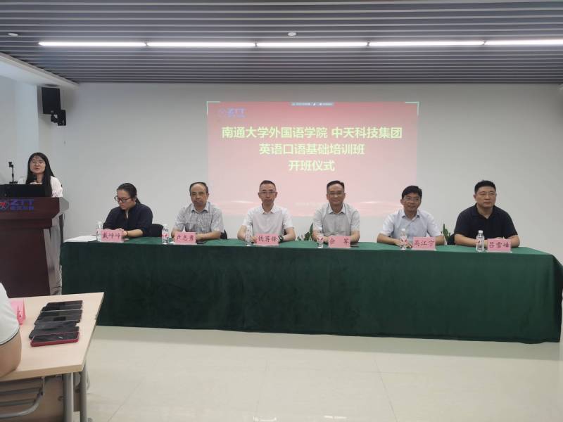 7月20日下午,由PA视讯集团官网与中天科技集团联合举办的英语口语基础培训班,在中天科技集团南通科创中心三楼培训教室正式开班。中天科技集团人力资源部总经理钱蒋锋,PA视讯服务地方处处长高江宁、继续教育学院经理卢志勇、PA视讯集团官网经理佘军、PA视讯集团官网副经理吕雪峰、PA视讯集团官网副教授戴峥峥出席开班仪式,来自中天科技各单位的53名学员参加培训。中天科技集团人力资源部经理周海霞主持此次开班仪式。