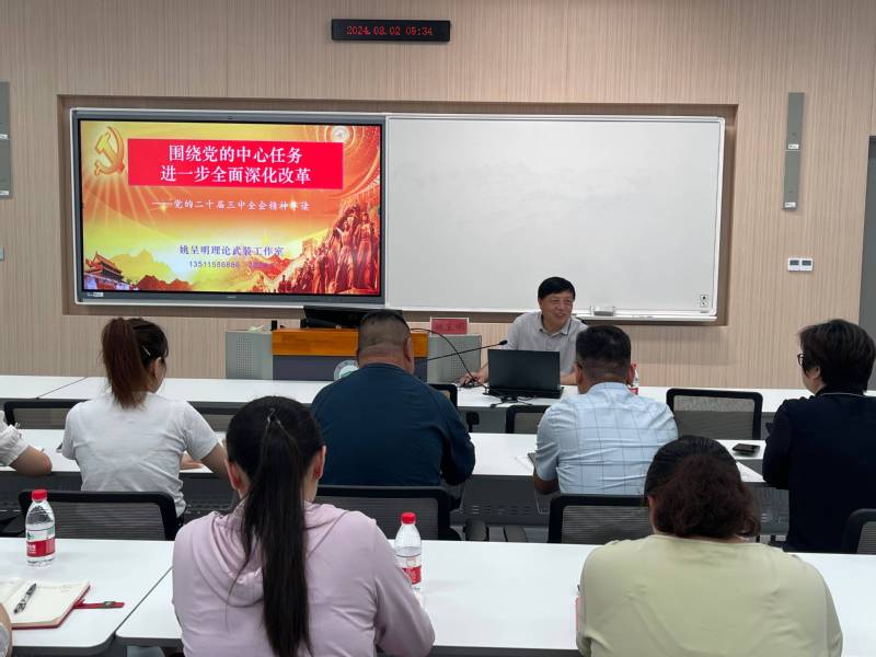 姚呈明以《围绕党的中心任务进一步全面深化改革》为题,从准确把握全会的重大意义、深入学习领会习近平总书记重要讲话精神、全面准确理解《中共中央关于进一步全面深化改革、推进中国式现代化的决定》提出的进一步全面深化改革重大举措、全力以赴抓好全会精神贯彻落实等方面,对全会精神进行了系统阐释和深入解读。报告中,他针对有效贯彻落实全会任务提出三点要求:一是全面学习是前提。要读原文悟原理,要前后贯通、突出重点,真正做到在思想、情感、政治和实践上认同;二是联系实际是桥梁,要准确理解到教育、科技、人才是中国式现代化的基础性、战略性支撑;三是投身改革是责任,要正确对待处理改革利益调整,心无旁骛落实改革各项举措,聚焦聚力破解改革棘手难题,坚决做到不越法律底线不碰纪律红线。他坚信,坚持以习近平新时代中国特色社会主义思想为指导,坚决贯彻落实进一步全面深化改革的总体部署,必将推动“中国号”巨轮乘风破浪、行稳致远。