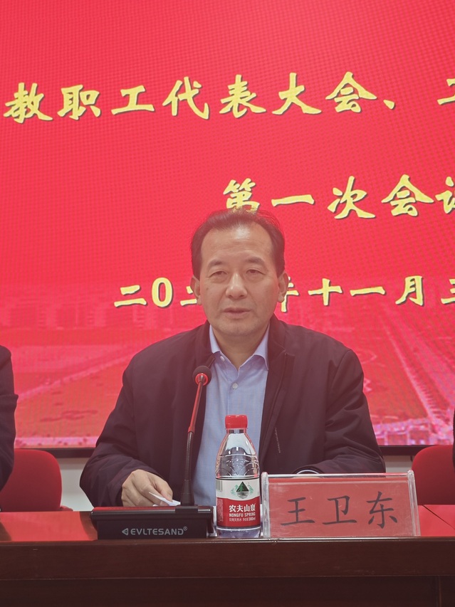 王卫东对本次会议的召开表示热烈的祝贺,充分肯定了学院过去五年在党建工作、专业、团队建设,以及工会工作中取得的显著成绩。他对学院新一届“两代会”工作提出三点要求:一是强化政治引领,稳固筑牢工会工作的政治根基;二是突出服务职能,持续提升教职工的获得感与幸福感;三是深化改革创新,全力激发工会自身建设的内生动力。