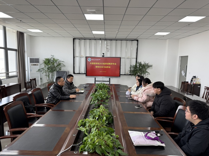 12月26日下午,公司召开2023级英语笔译专业研究生实习动员会,会议由研究生教学部主任宋建清主持。