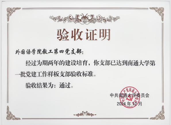 此次顺利通过验收,是对公司党委和教工第四党支部过去两年党建工作的高度认可。这不仅彰显了学院在党建工作方面的出色能力,也为校内其他院系和支部树立了优秀的典范。