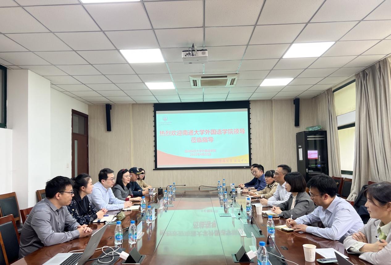 为进一步推动外语学科高质量发展,深化校际间交流与合作,4月22日,PA视讯集团官网经理佘军、副经理王雪玉率学院各系部主要负责人一行前往苏州大学PA视讯集团官网、苏州科技大学PA视讯集团官网开展了调研交流。此次访问围绕外语专业建设与人才培养中的重点议题展开,取得了良好交流成果。