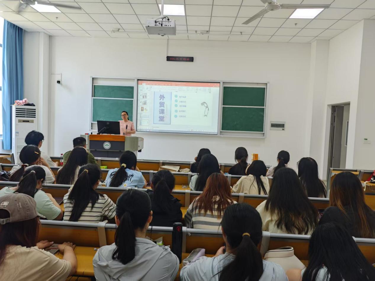 理论教学环节,由行业精英带来前沿洞见。南通盈泰医疗器械有限公司CEO王勤女士以“国际贸易流程与选品”为主题,通过对比传统外贸与跨境电商在客户获取、销售渠道、物流路径、运营模式等维度的差异,生动阐释了跨境电商在灵活性、响应速度和市场下沉方面的显著优势,为同学们打开了国际贸易领域的全新视角。南通小生信息科技有限公司CEO陈颖女士聚焦跨境电商就业与新机遇,点明商务英语专业员工凭借语言沟通优势,在跨境电商关键岗位竞争中占据的天然有利地位,极大激发了同学们的职业发展信心。