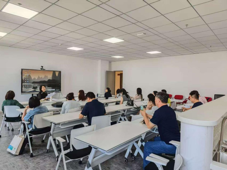在案例展示环节,三位党员教师结合英语专业课程,分享了课程思政的创新实践。杨娟老师以《“传播中国”大学英语进阶教程》中“美丽中国”单元为例,通过项目式学习和产出导向法,引导员工讲好中国故事,培养员工的国际传播能力。圣小利老师分享在《商务翻译》课程教学中,通过分析中国品牌海外广告的翻译案例,探究跨文化传播价值,增强员工的国际传播意识。朱丹老师从教材解析、课堂实践和党建引领三个方面,汇报了如何将课程思政与专业教学深度融合,扎实推进“三进”工作。